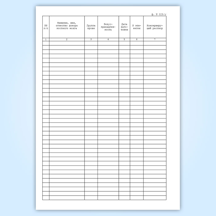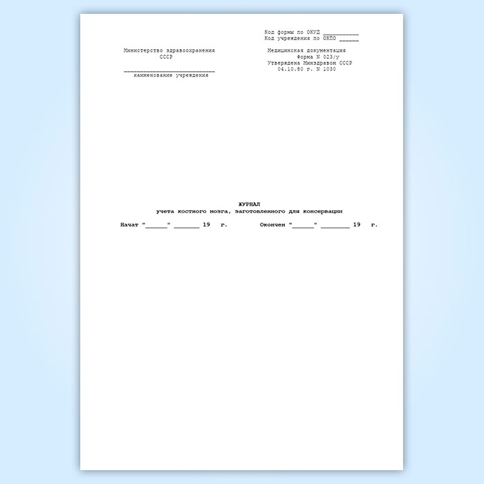 Журнал учета костного мозга, заготовленного для консервации (форма 023/у) в Ачинске купить