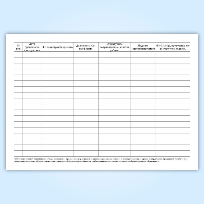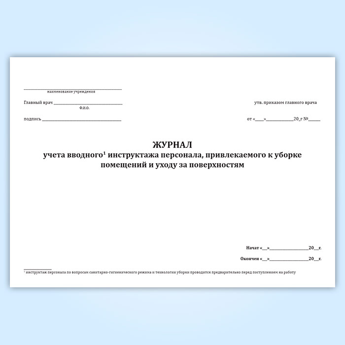 Журнал учета вводного инструктажа персонала, привлекаемого к уборке помещений и уходу за поверхностями в Ачинске купить