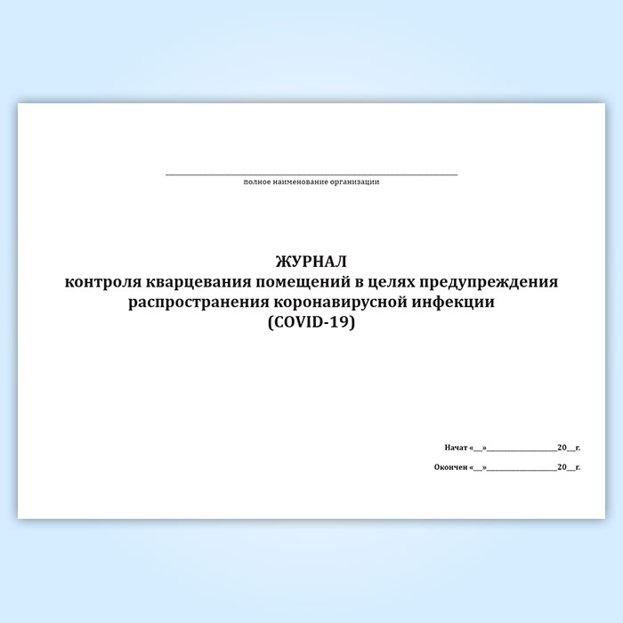 Журнал контроля кварцевания помещений в целях предупреждения распространения коронавирусной инфекции (COVID-19) в Ачинске купить