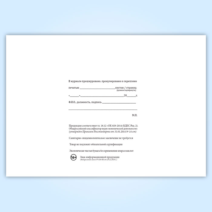 Вы получаете печатную продукцию прошнурованной и c местом для вашей печати в соответствии с действующими нормативными документами: