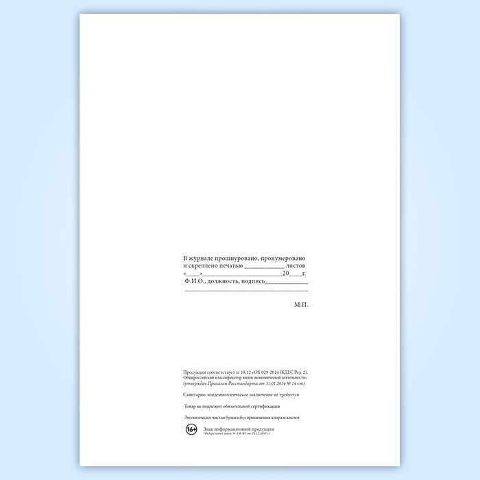 Вы получаете печатную продукцию прошнурованной и c местом для вашей печати в соответствии с действующими нормативными документами: