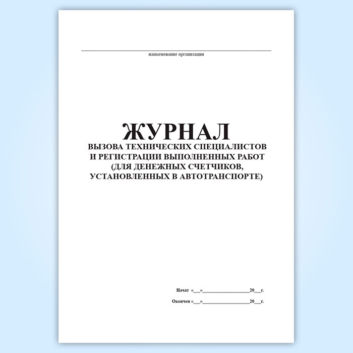 Журнал вызова технических специалистов и регистрации выполненных работ (для денежных счетчиков, установленных в автотранспорте) в Ачинске купить