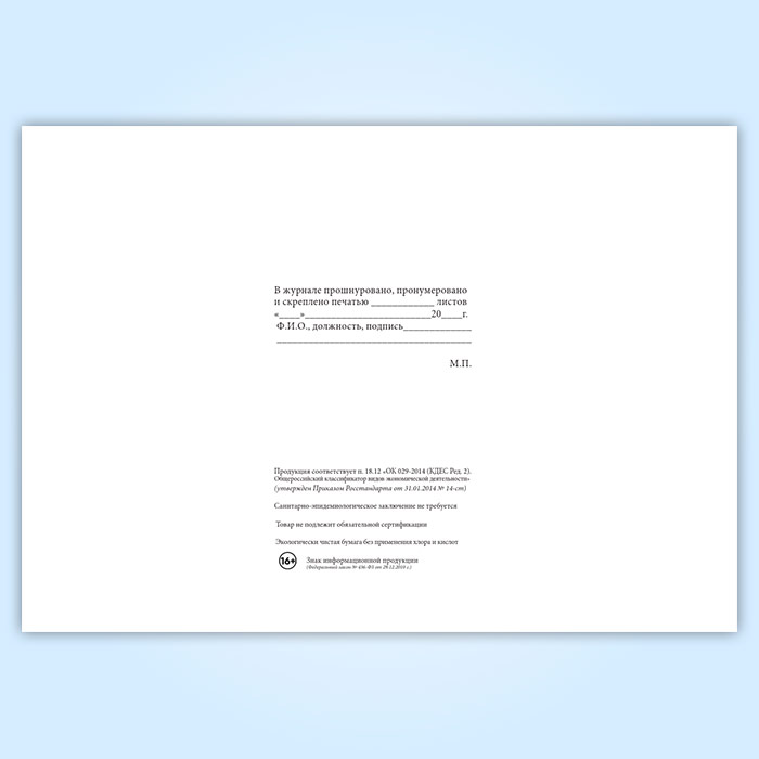 Вы получаете печатную продукцию прошнурованной и c местом для вашей печати в соответствии с действующими нормативными документами: