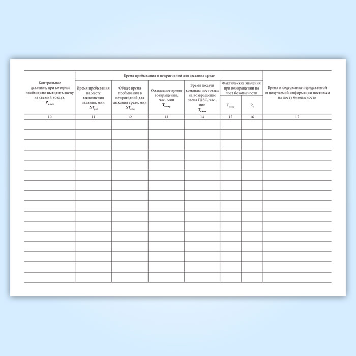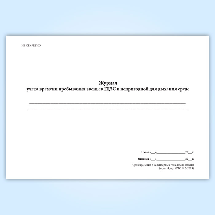 Журнал учета времени пребывания звеньев ГДЗС в непригодной для дыхания среде в Ачинске купить