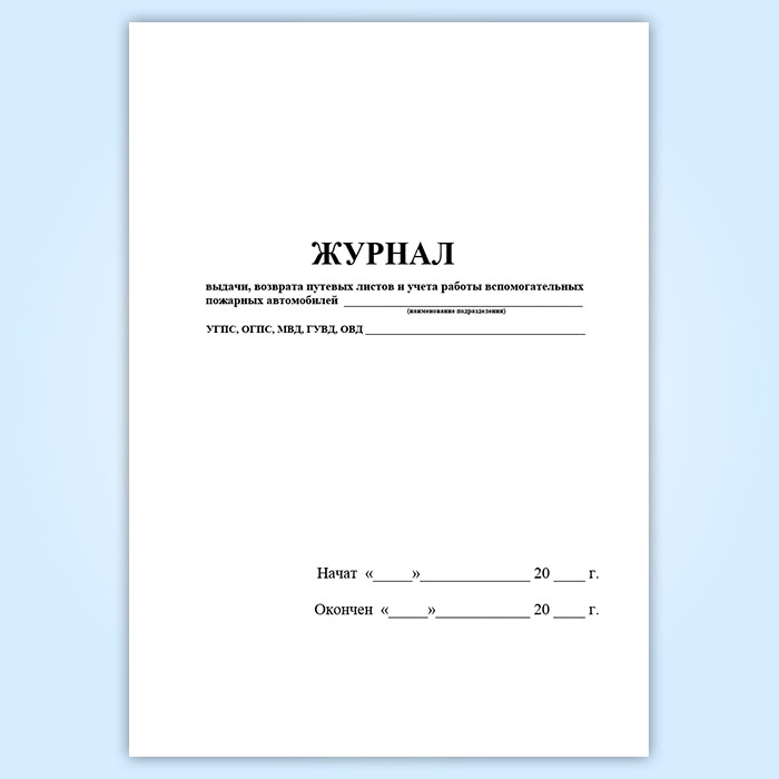 Журнал выдачи, возврата путевых листов и учета работы вспомогательных пожарных автомобилей в Ачинске купить