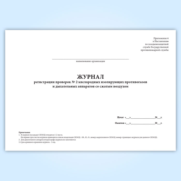 Журнал регистрации проверок № 2 кислородных изолирующих противогазов и дыхательных аппаратов на сжатом воздухе в Ачинске купить