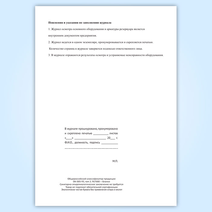 Журнал осмотра основного оборудования и арматуры резервуара (нефтепродукты) в Ачинске купить