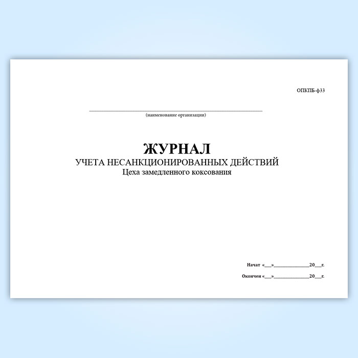 Журнал учета несанкционированных действий цеха замедленного коксования (ОПКПБ-ф33) в Ачинске купить