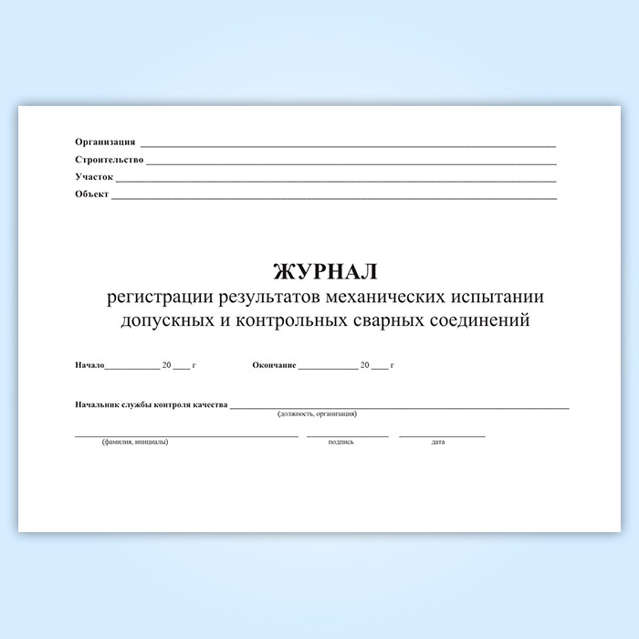 Журнал регистрации результатов механических испытаний допускных и контрольных сварных соединений в Ачинске купить