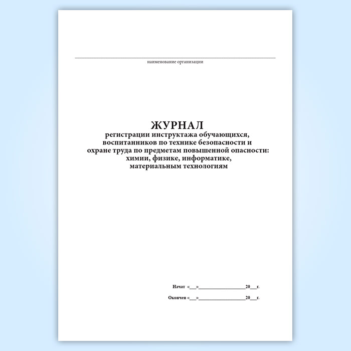 Журнал регистрации инструктажа обучающихся, воспитанников по технике безопасности и охране труда по предметам повышенной опасности: химии, физике, информатике, материальным технологиям в Ачинске купить