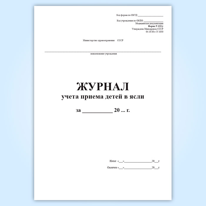 Журнал учета приема детей в ясли (форма 122/у) в Ачинске купить
