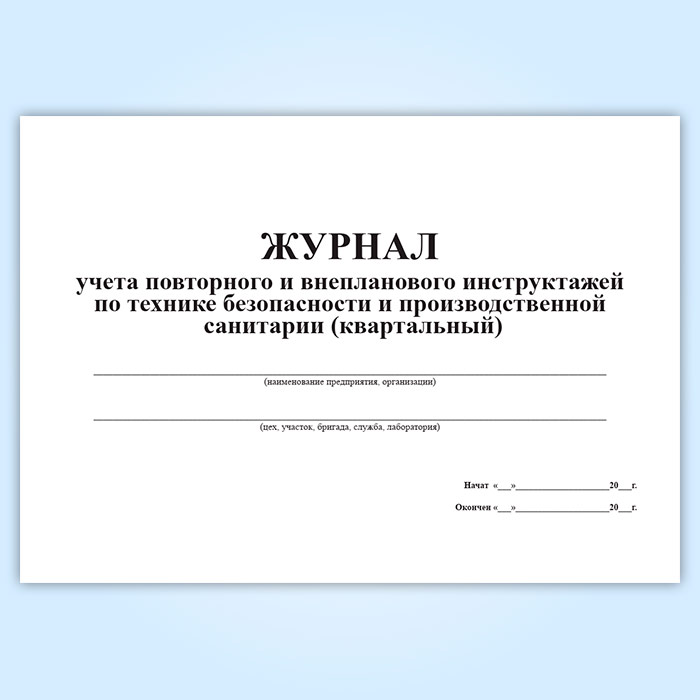 Журнал учета повторного и внепланового инструктажей по технике безопасности и производственной санитарии (квартальный) в Ачинске купить