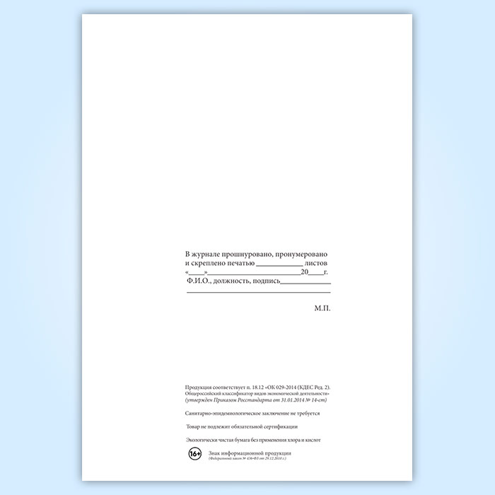 Вы получаете печатную продукцию прошнурованной и c местом для вашей печати в соответствии с действующими нормативными документами: