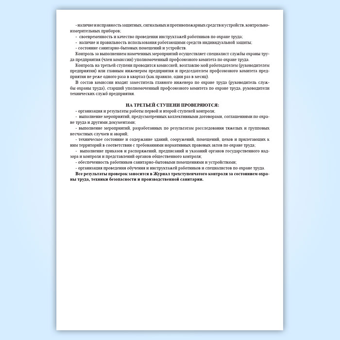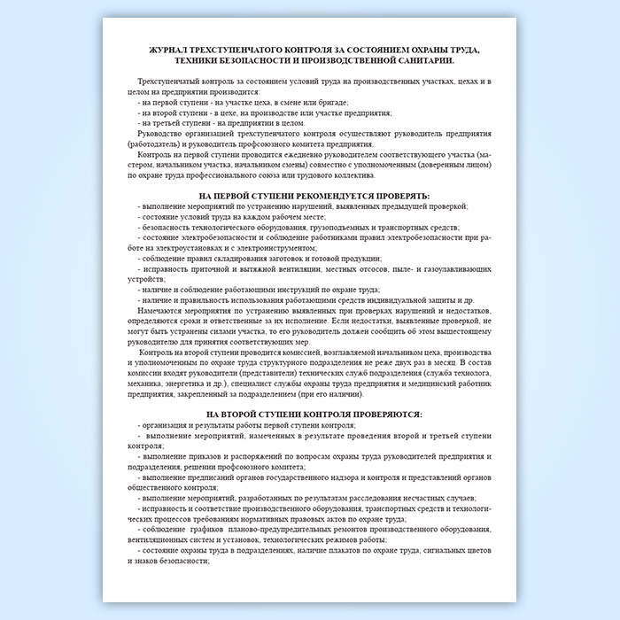 Журнал трехступенчатого контроля за состоянием охраны труда, техники безопасности и производственной санитарии 1 и 2 ступени в Ачинске купить