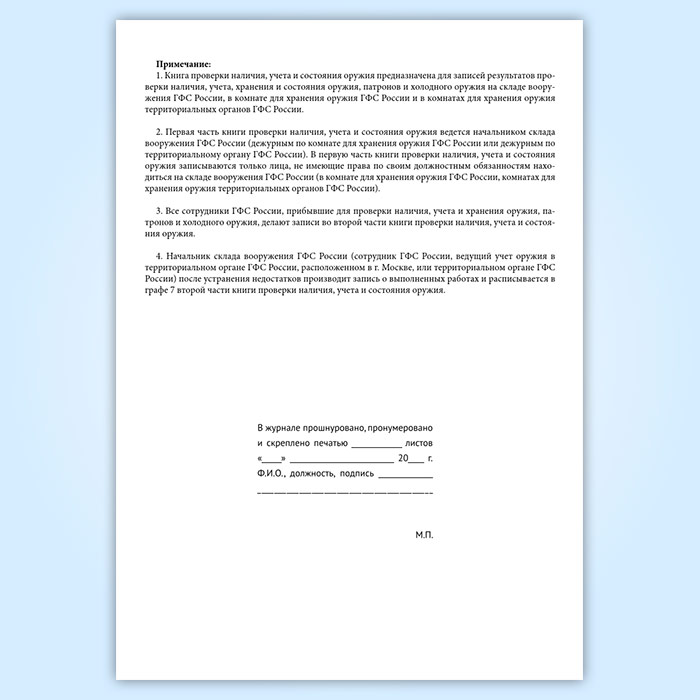 Книга проверки наличия, учета и состояния оружия (форма 20) в Ачинске купить
