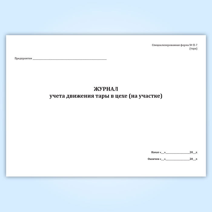 Журнал учета движения тары в цехе (форма П-7 тара) в Ачинске купить