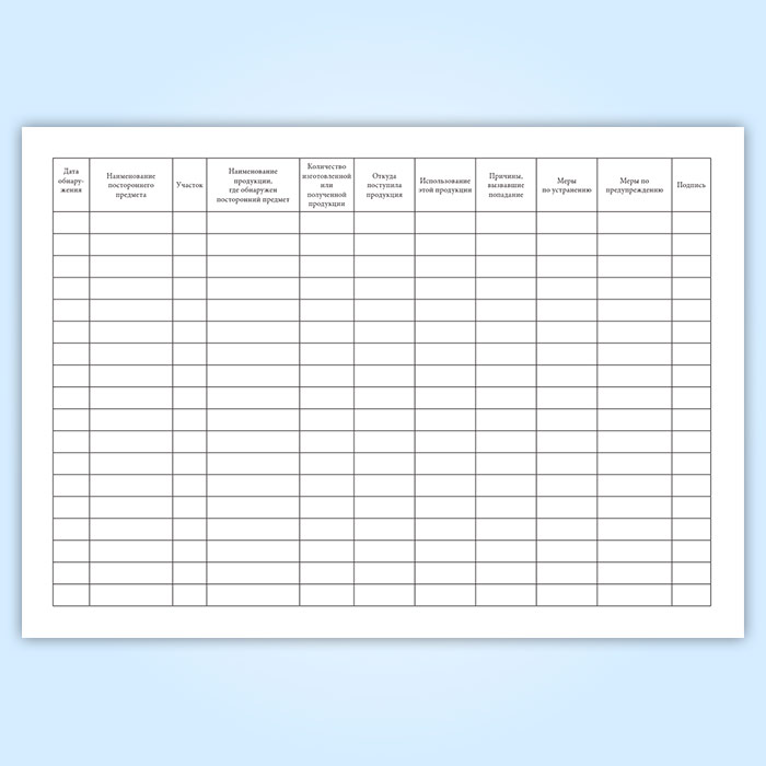 Журнал учета посторонних предметов и включений, обнаруженных в сырье, продукции на производственных участках в Ачинске купить