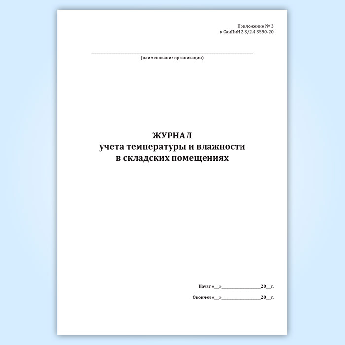 Журнал учета температуры и влажности в складских помещениях (СанПиН 2.3/2.4.3590-20) в Ачинске купить