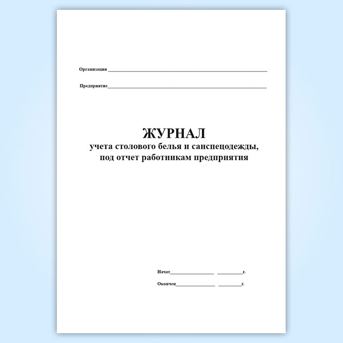 Журнал учета столового белья и санспецодежды, выдаваемой под отчет работникам предприятия в Ачинске купить