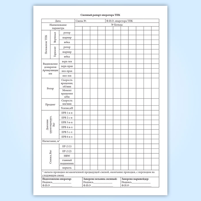 Журнал сменных рапортов операторов тоннелепроходческого комплекса в Ачинске купить