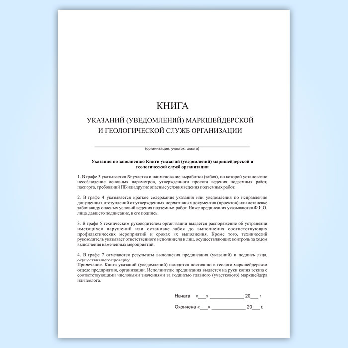 Книга указаний (уведомлений) маркшейдерской и геологической служб организации в Ачинске купить