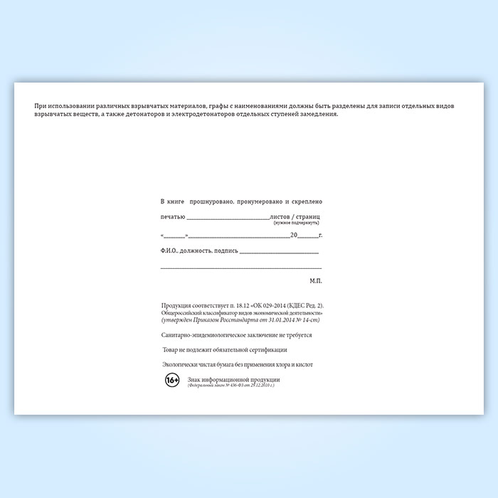 Книга учета прихода и расхода взрывчатых материалов участкового пункта хранения ВМ в Ачинске купить