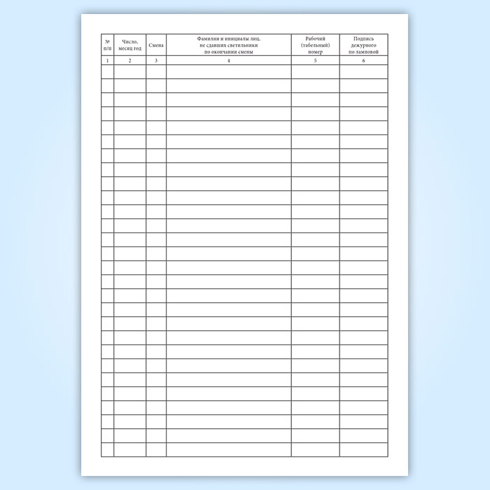 Журнал записи фамилий лиц, не сдавших светильники по окончании смены в Ачинске купить
