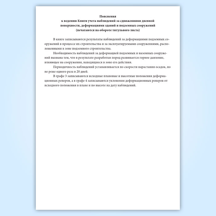 Книга учета наблюдений за сдвижениями дневной поверхности, деформациями зданий и подземных сооружений в Ачинске купить