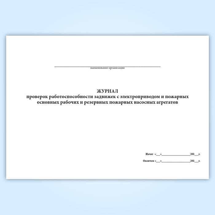 Журнал проверок работоспособности задвижек с электроприводом и пожарных основных рабочих и резервных пожарных насосных агрегатов в Ачинске купить