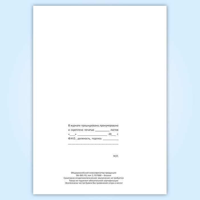 Вы получаете печатную продукцию прошнурованной и c местом для вашей печати в соответствии с действующими нормативными документами: