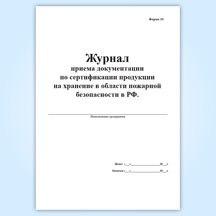 Журнал приема документации по сертификации продукции на хранение в области пожарной безопасности в РФ (форма 19) в Ачинске купить