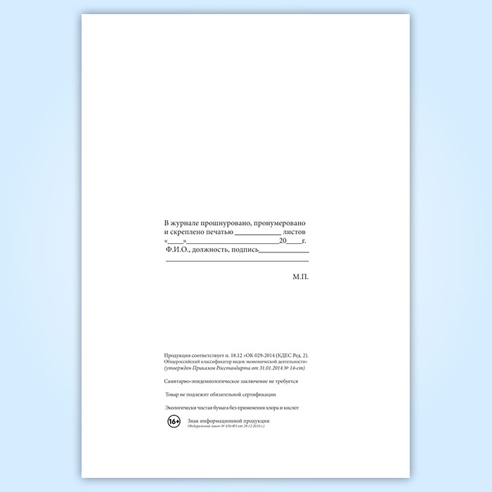 Вы получаете печатную продукцию прошнурованной и c местом для вашей печати в соответствии с действующими нормативными документами: