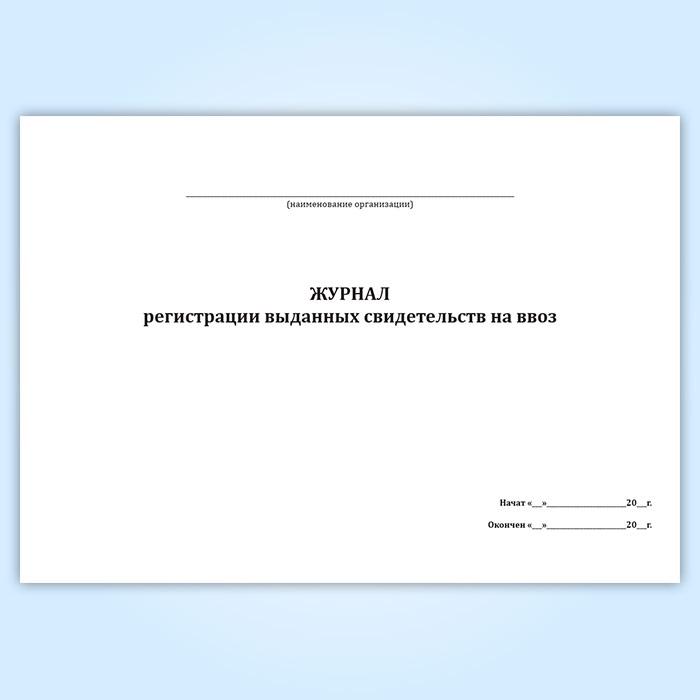 Журнал регистрации выданных свидетельств на ввоз в Ачинске купить