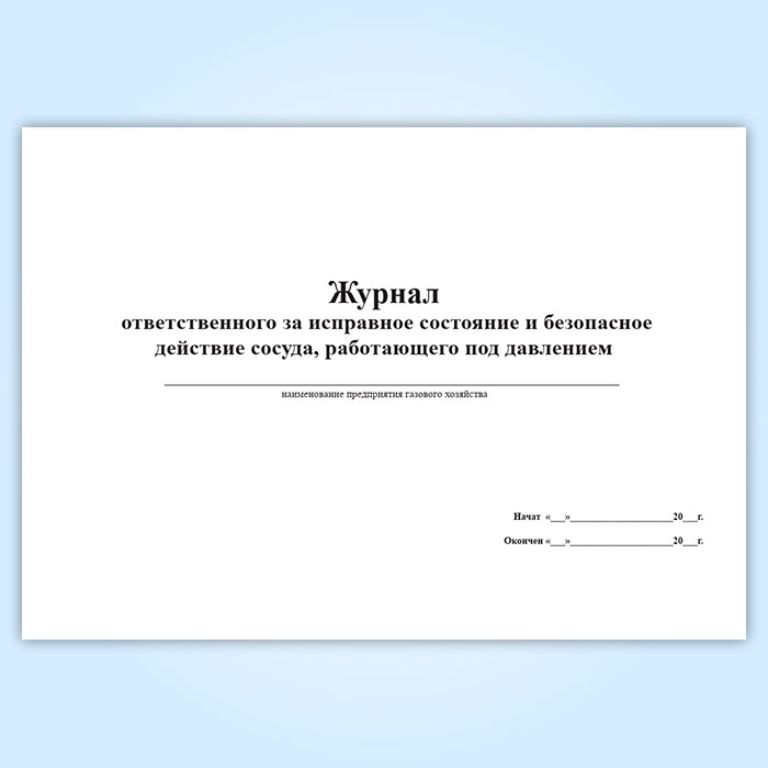 Журнал ответственного за исправное состояние и безопасное действие сосуда, работающего под давлением в Ачинске купить