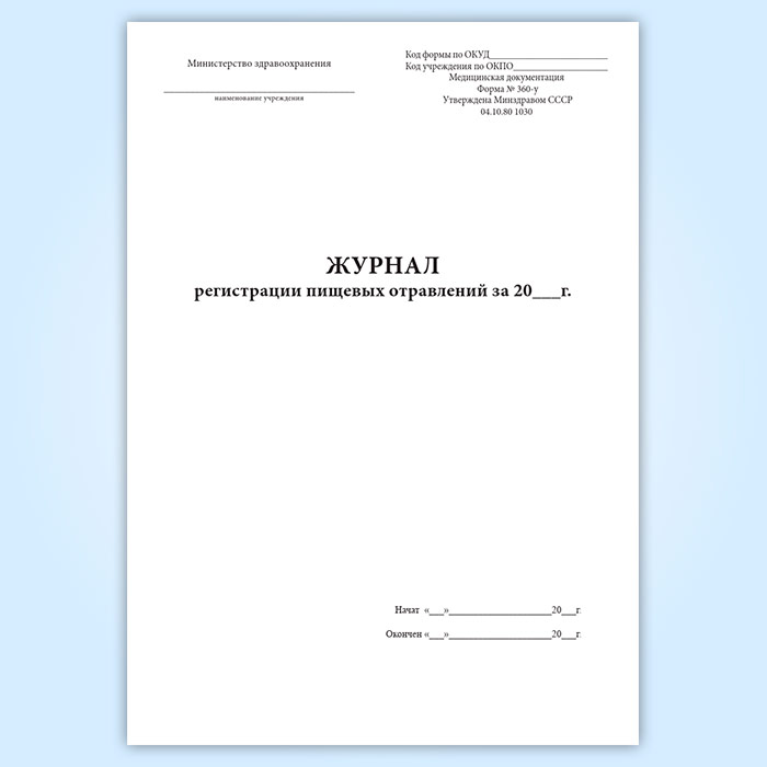 Журнал регистрации пищевых отравлений за год (форма 360/у) в Ачинске купить
