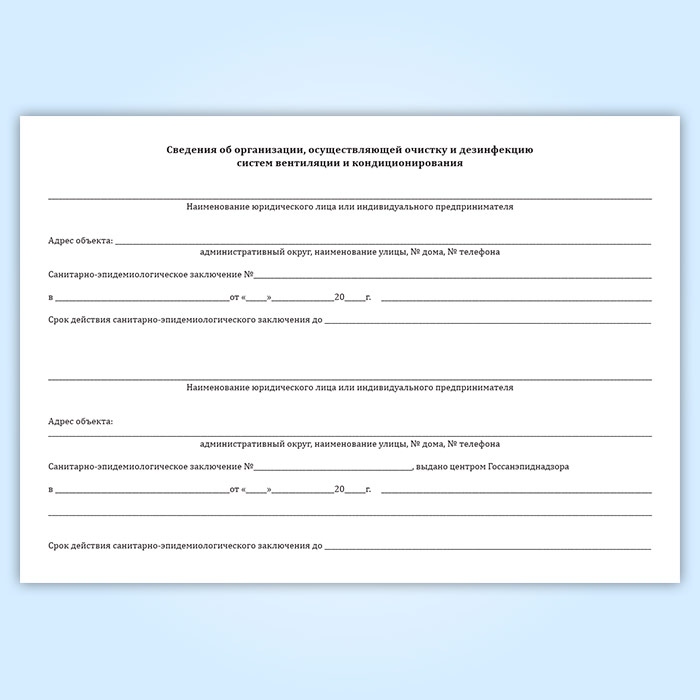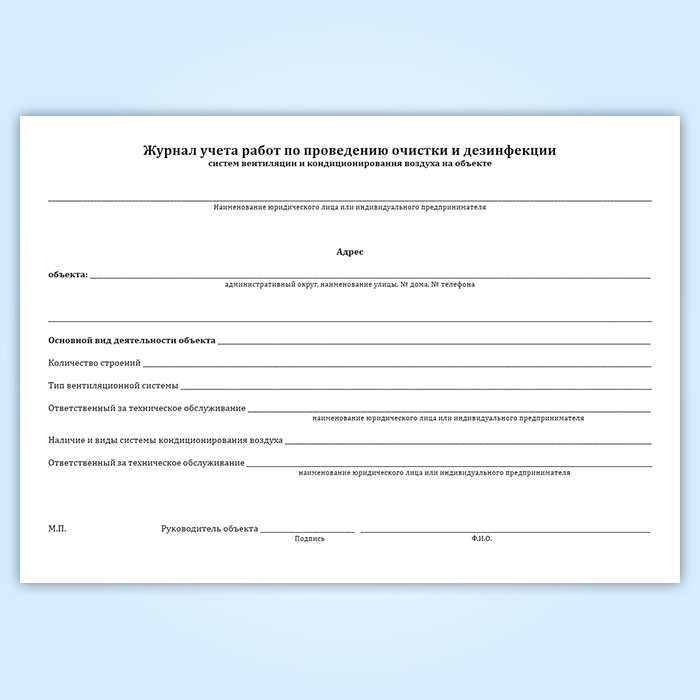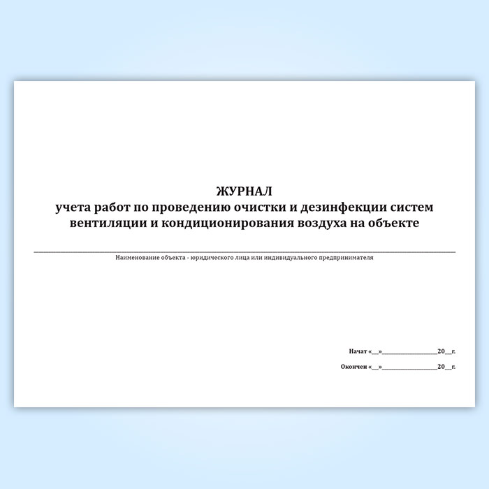 Журнал учета работ по проведению очистки и дезинфекции систем вентиляции и кондиционирования воздуха на объекте в Ачинске купить