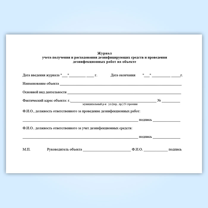 Журнал учета получения и расходования дезинфицирующих средств и проведения дезинфекционных работ на объекте в Ачинске купить