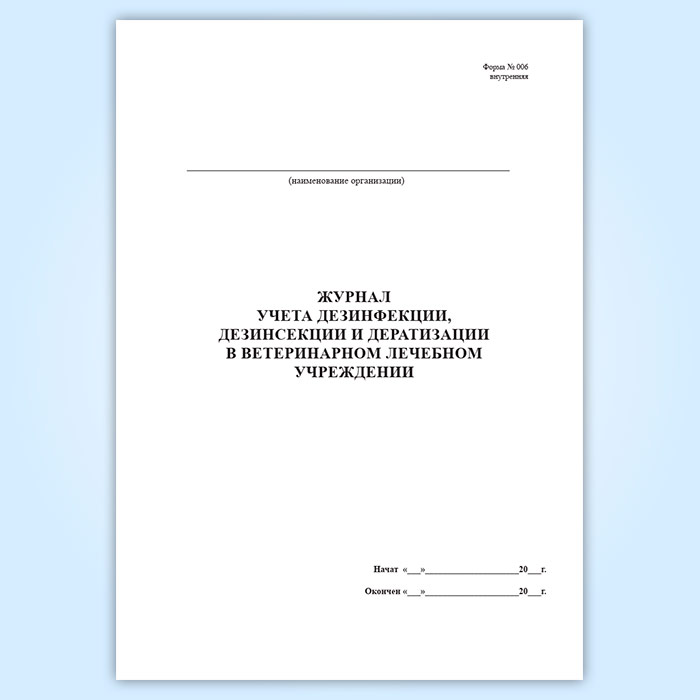 Журнал учета дезинфекции ветеринарного лечебного подразделения (форма № 006 вн.) в Ачинске купить