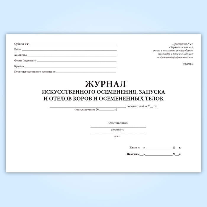 Журнал искусственного осеменения, запуска и отелов коров и осемененных телок в Ачинске купить