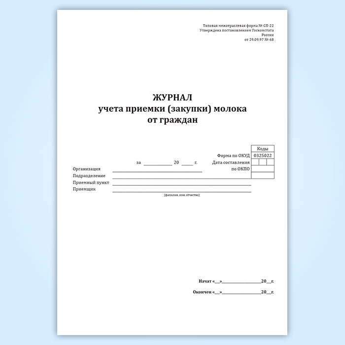 Журнал учета приемки (закупки) молока от граждан (форма СП-22) в Ачинске купить