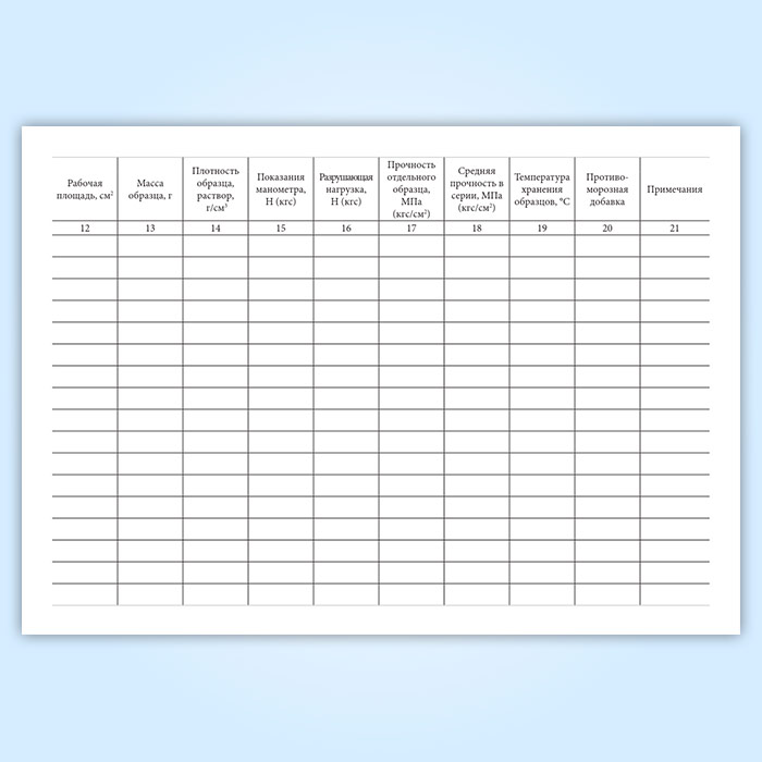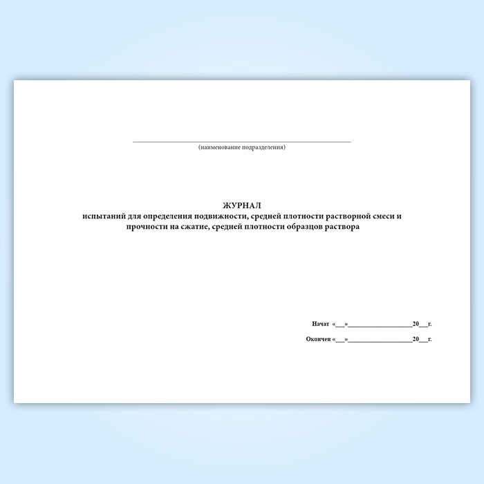 Журнал испытаний для определения подвижности, средней плотности растворной смеси и прочности на сжатие, средней плотности образцов раствора в Ачинске купить