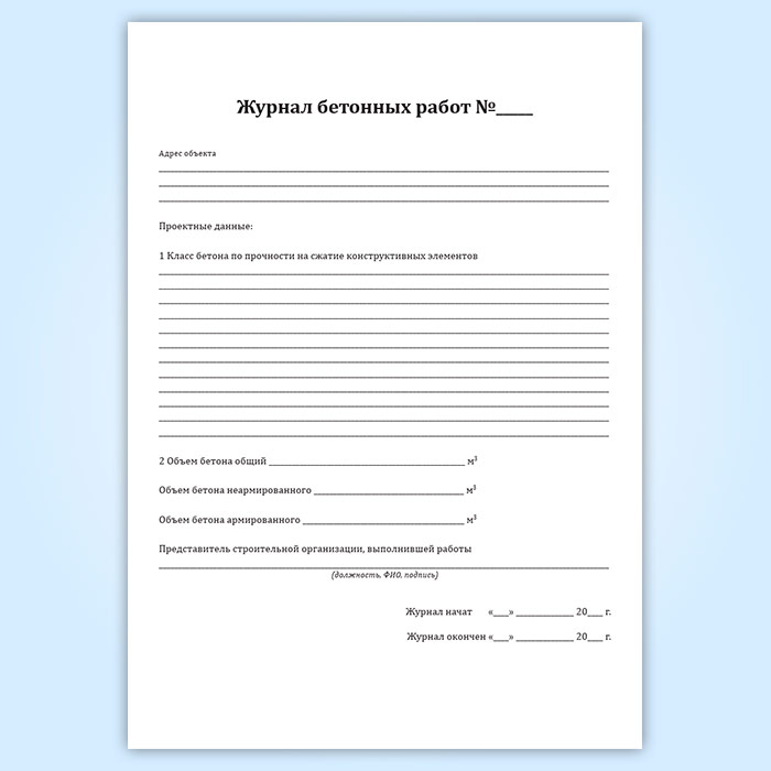 Журнал бетонных работ (форма 12.1, СП 392.1325800.2018) в Ачинске купить