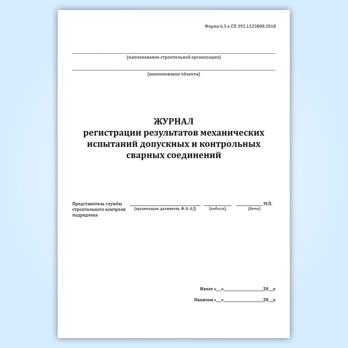 Журнал регистрации результатов механических испытаний допускных и контрольных сварных соединений (форма 6.3) в Ачинске купить