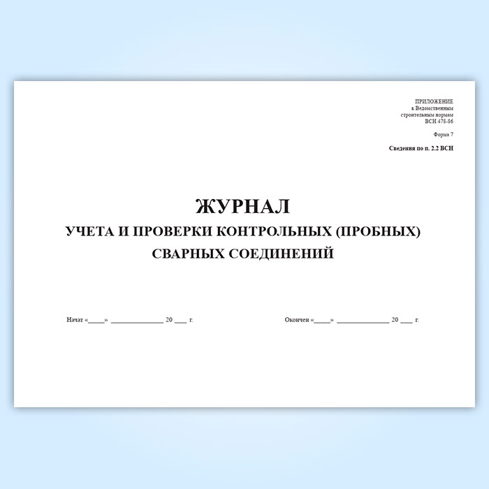 Журнал учета и проверки качества контрольных (пробных) сварных соединений (форма 7) в Ачинске купить