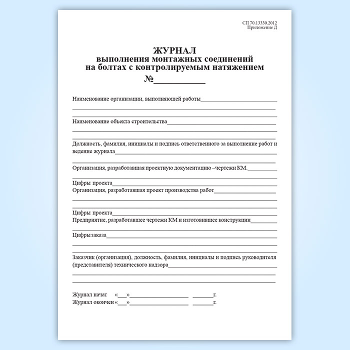 Журнал выполнения монтажных соединений на болтах с контролируемым натяжением в Ачинске купить