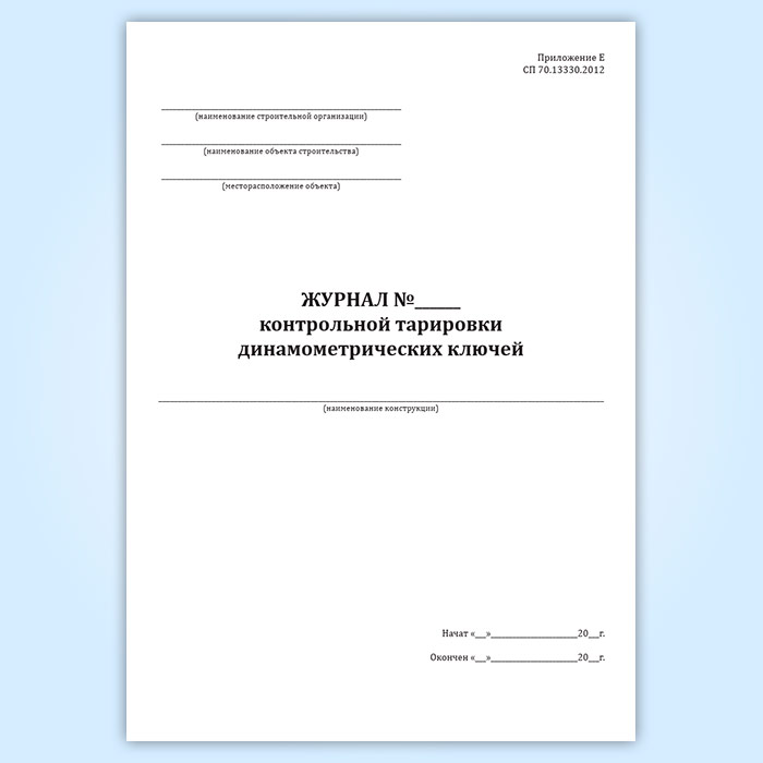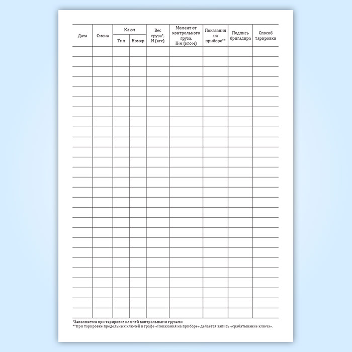 Журнал контрольной тарировки динамометрических ключей в Ачинске купить