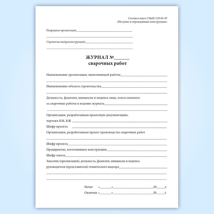 Журнал сварочных работ (СНиП 30301-87) в Ачинске купить