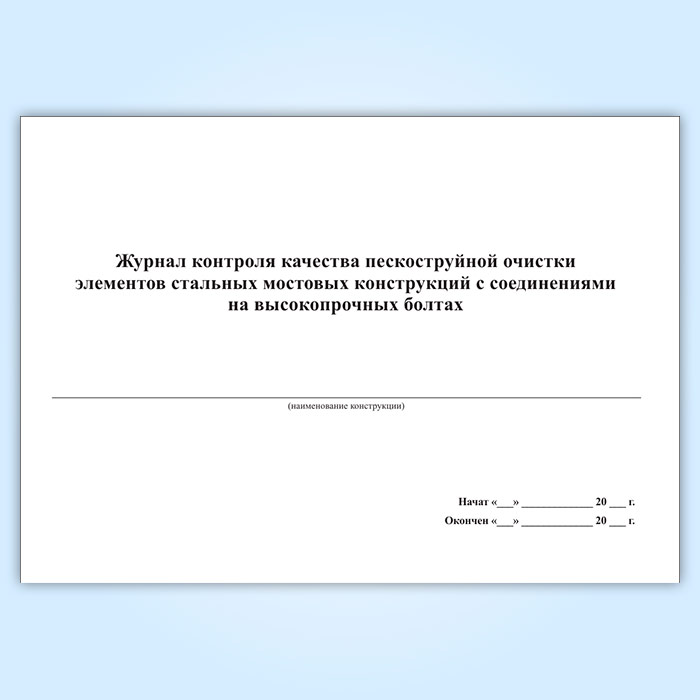 Журнал контроля качества пескоструйной очистки элементов стальных мостовых конструкций с соединениями на высокопрочных болтах в Ачинске купить