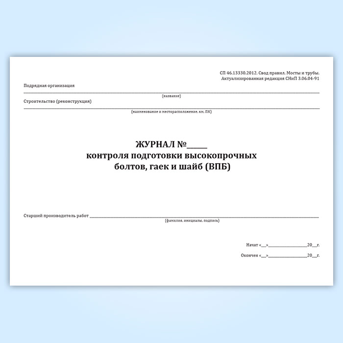 Журнал контроля подготовки высокопрочных болтов, гаек и шайб в Ачинске купить