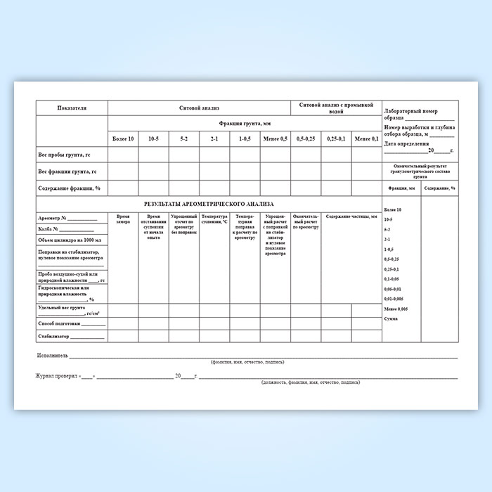 Журнал лабораторного определения гранулометрического (зернового) состава грунта в Ачинске купить